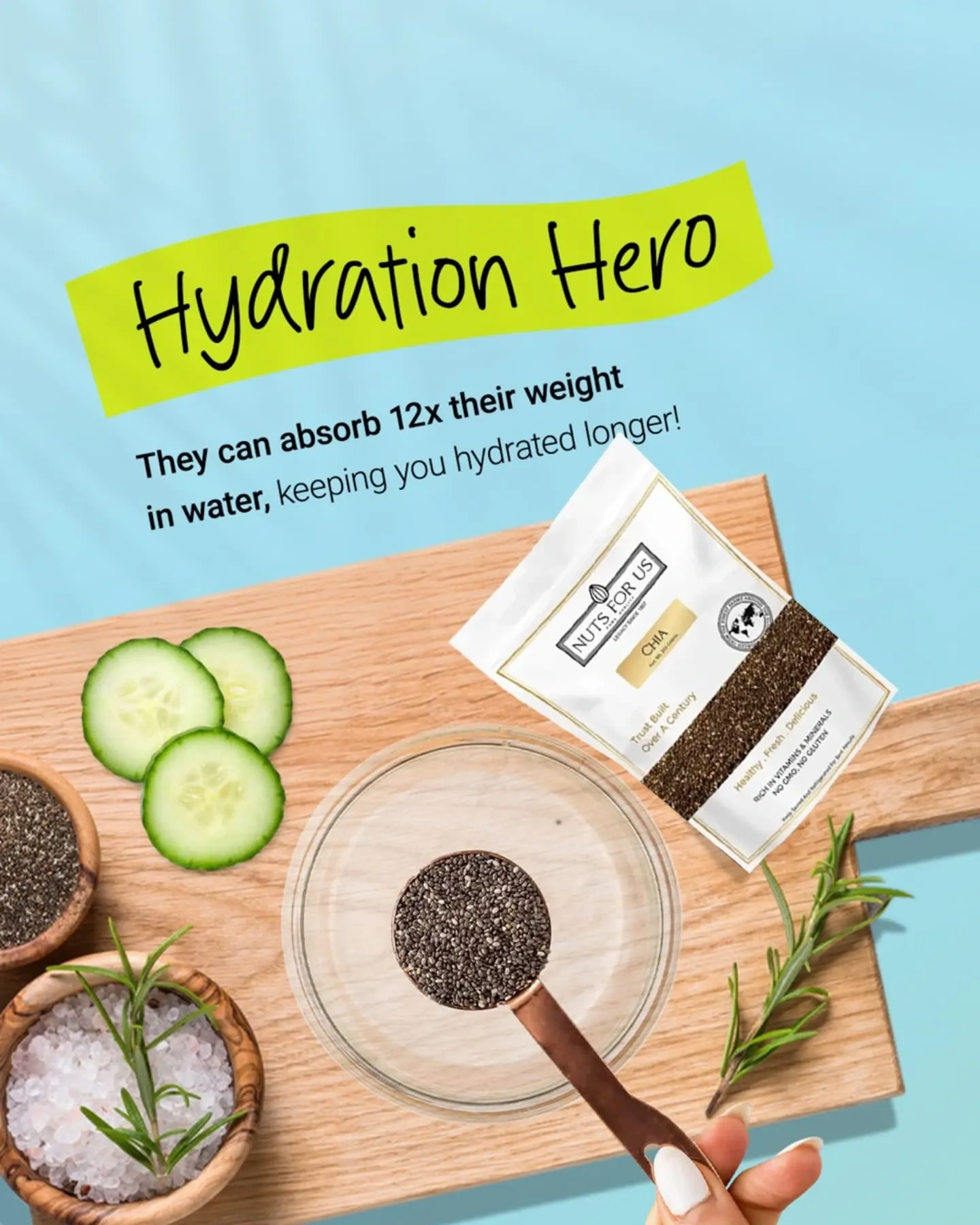 Nuts For Us Chia Seeds bring a reliable and versatile ingredient to your kitchen. These small seeds hold liquid well and turn into a smooth, gel-like texture — ideal for hydrating drinks, puddings, and breakfast bowls. Their neutral taste fits into both sweet and savoury preparations easily.